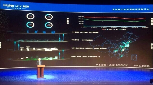 由我公司实施搭建的国内最大的智慧能源定制平台——海尔集团智慧能源大数据互联控制中心上线运行一年多来节约能耗成效显著。2017年,海尔集团单台产品能耗下降了26.93%,节约能源费用1.32亿元。