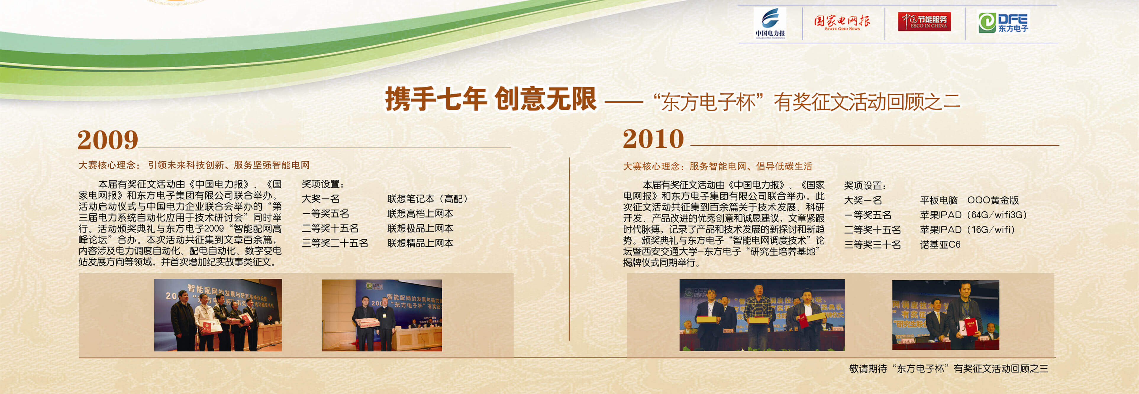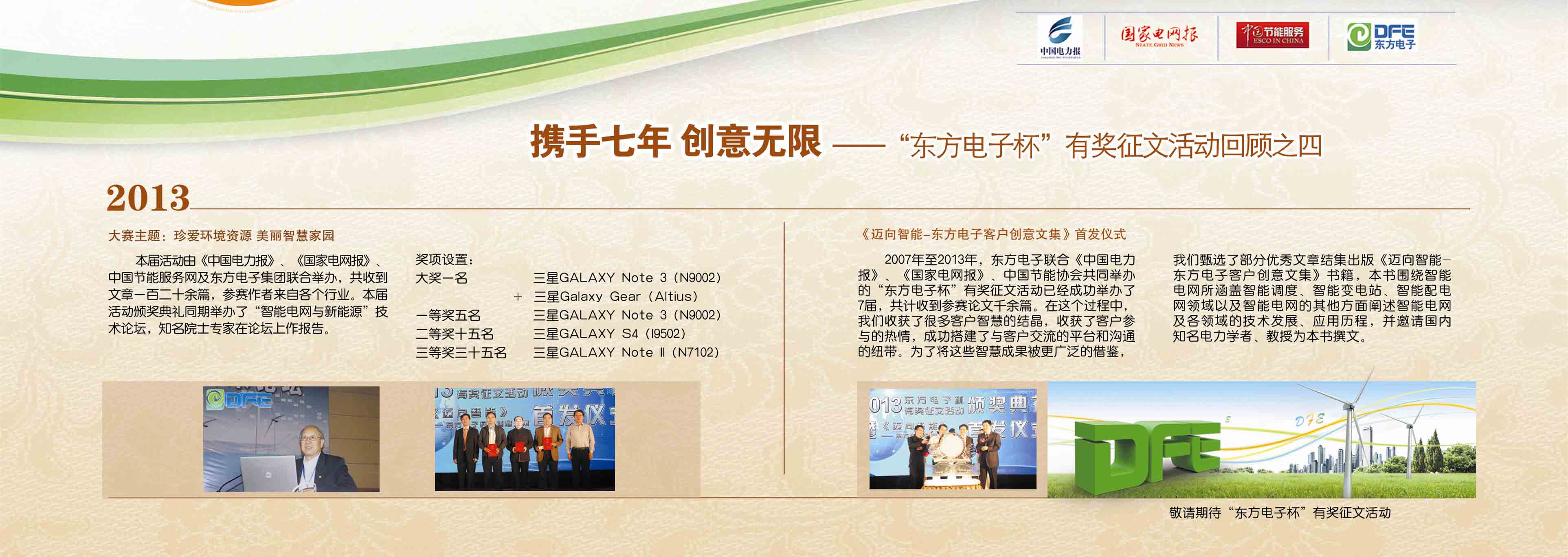 2007年至今,由乐鱼电子联合《中国电力报》、《国家电网报》、《中国节能服务》杂志共同举办的“乐鱼电子杯”有奖征文活动已成功举办七届,在这个过程中,乐鱼收获了很多客户智慧的结晶、收获了客户参与的热情,成功搭建了与客户交流的平台和沟通的纽带。