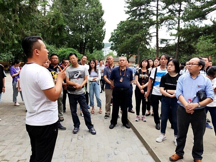 第五站陕西富平县。在富平县学员们拜谒了习仲勋陵墓,瞻仰了习老雕像,表达大家的缅怀之情。随后,参观了习仲勋生平事迹纪念馆。通过观看图片和实物,大家深入了解了习仲勋同志为中华民族的解放、为新中国的建立、建设和改革开放事业呕心沥血的丰功伟绩,深刻领悟了习仲勋同志实事求是、心系群众的工作态度和工作方法。